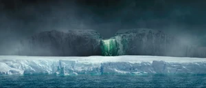 At the beginning of the film, it is shown how some drops of water fall in a crack in the ice. This crack gets wider and wider, until a huge piece of ice was separated from the continent of Antarctica. Later, the piece of ice went on a collision course for Emperor-Land and crashed into it, blocking its only entrance and exit.