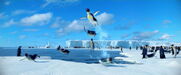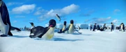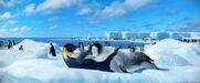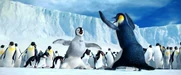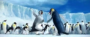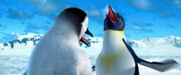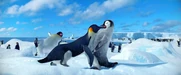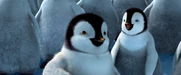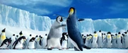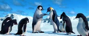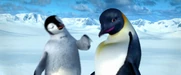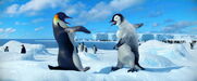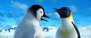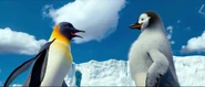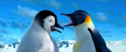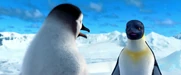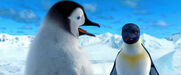 Gloria and Mumble are excited to see each other when she catches up to him on his journey to the Forbidden Shore in Happy Feet